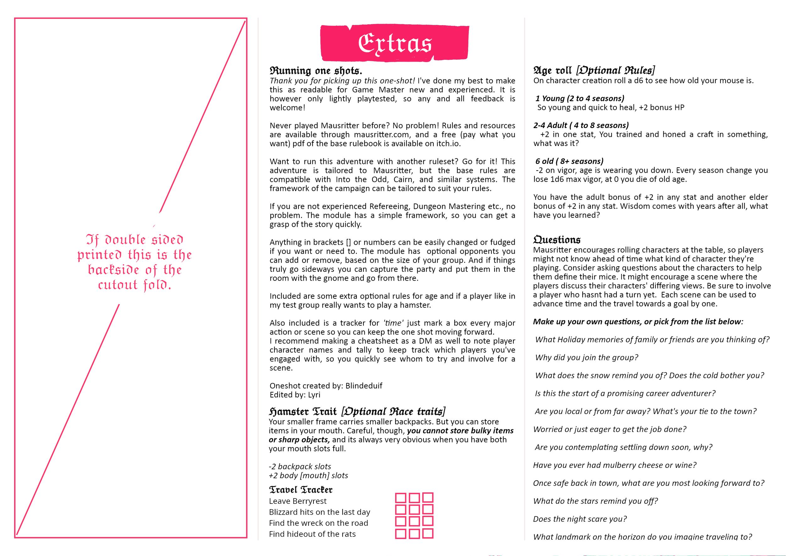 | Tags | holiday, mausritter, One-shot, OSR, Tabletop, Tabletop role-playing game, yule |